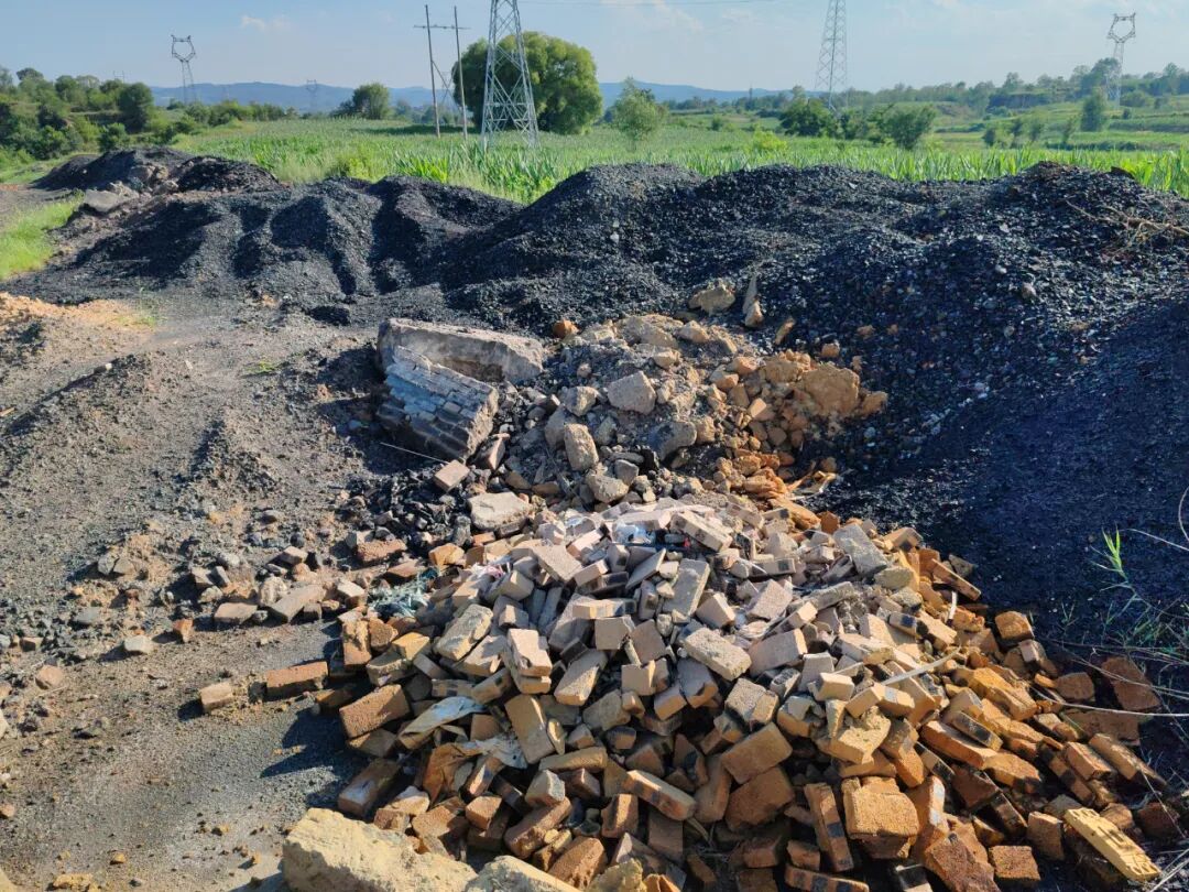 根据当地村民介绍,在南呈村,一处面积约20亩的开阔地也堆放着废弃砖头和各类生活垃圾。垃圾场入口处还立有落款“上党区北呈乡人民政府 宣”的公示牌,上面写着“严禁乱倒垃圾 爱护环境卫生”。