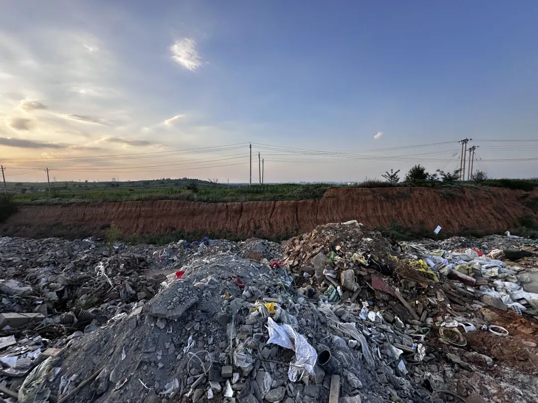 开阔地上堆着不少建筑垃圾和生活垃圾。