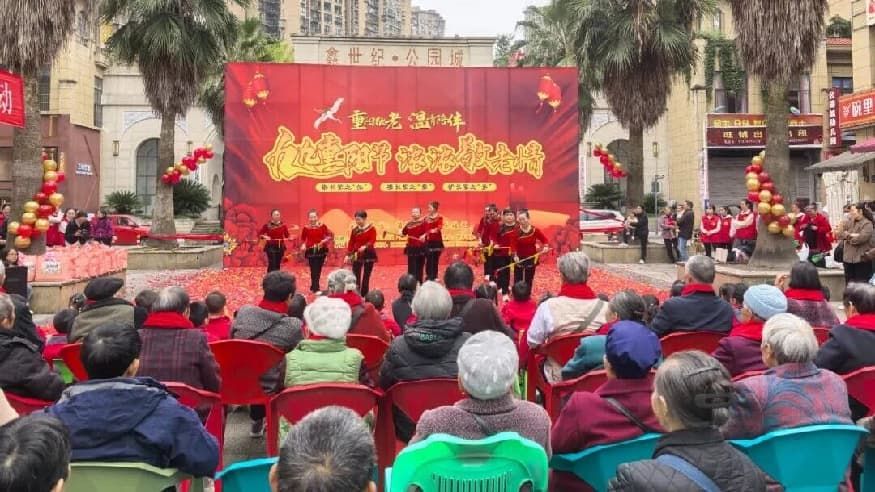 大成镇通过举办坝坝宴、文艺汇演等形式,为辖区老年人送上暖心关怀,让老人们在热闹氛围中感受节日温暖与邻里温情。