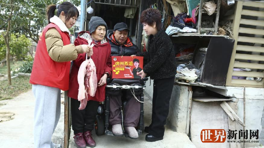 随后绵州燕姐又来到游仙区,由汉仙桥社区党委书记书记王兴关安排下,社区主任朱小槐陪同燕姐慰问社区农民工和困难残疾人,绵州燕姐为他们送上礼品盒,水果,香肠和新鲜猪肉。