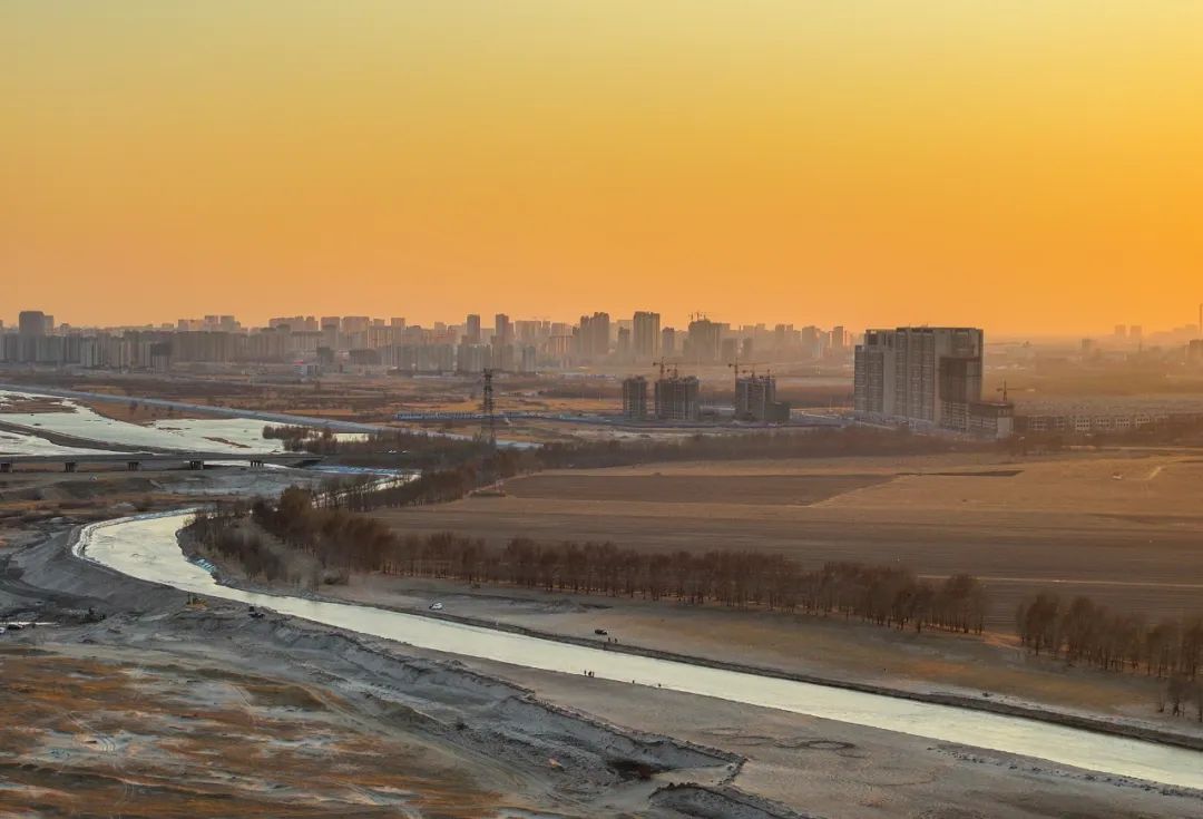 4月8日,西辽河水穿过通辽城区,顺流而下(无人机照片)。新华社记者 连振 摄