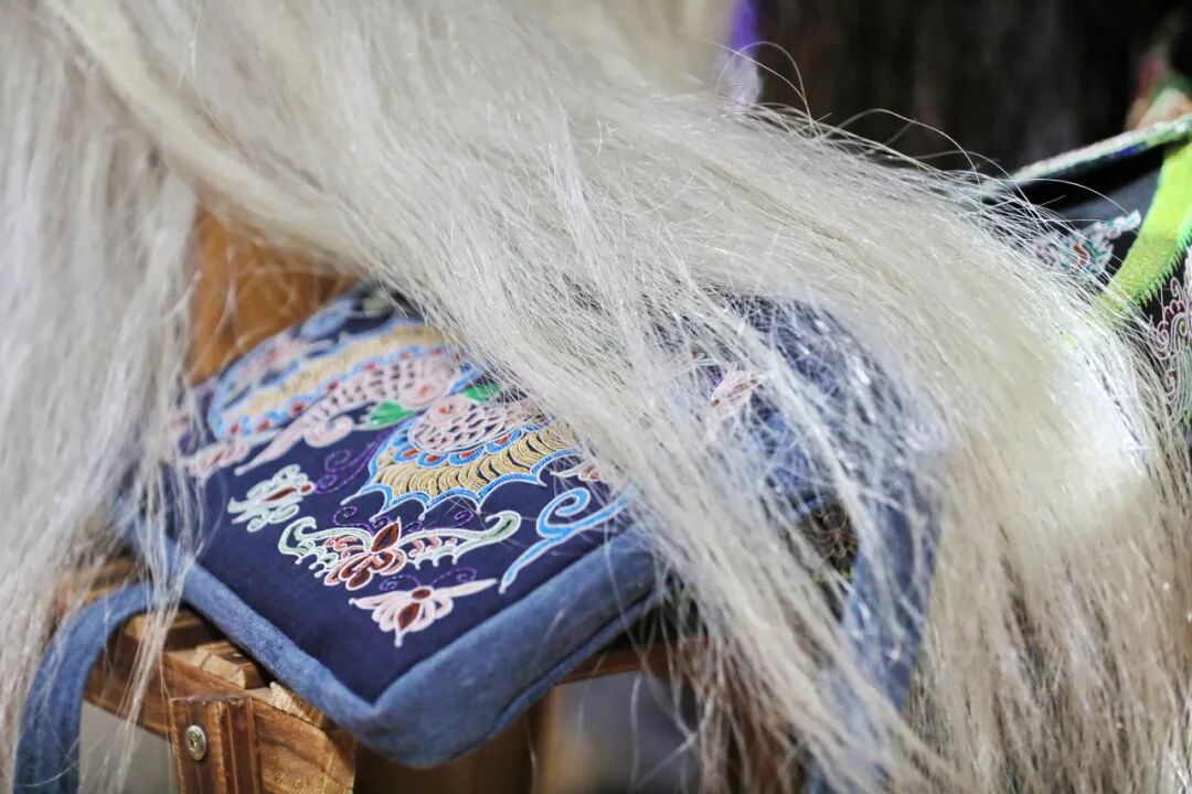 见到远道而来的客人如此钟爱马尾绣,韦应丽高兴得合不拢嘴。“以前绣背带传家,如今要靠它富家。”她抚过绣片上密实的马尾纹路,不禁感慨飞针走线间的时代变迁—— ▲取马尾毛作芯制作的马尾绣展品。 韦应丽4岁学艺,12岁缝制出第一条背带换回37元钱贴补家用。年幼的韦应丽懂得一件绣品的耗时漫长,也深知自己的劳作有“活化石”之名,却面临传承困境。 ▲韦应丽展示马尾绣技艺。 2006年,马尾绣跻身国家级“非遗”名录。次年,她拖着两只塞满绣品的行李箱,以汽车加火车接力的方式,“咣当”了近30个小时抵达上海展会。带回第一份省外订单时,她彻夜难眠——自己亲手织出的烙着水族印记的服装、背带、荷包,走出大山了。 ▲韦应丽(右一)与绣娘们在一起。 首张大额订单落定时,她兴奋地盘算起建公司、组协会的蓝图,并于2012年梦想成真。 接下来的事情让她想都不曾敢想。高铁来了,飞驰的列车载着马尾绣进入北京、上海、广州乃至海外市场,她的马尾绣多次在全国比赛中获得大奖,她本人还被授予“贵州民族刺绣工艺大师”等多项荣誉称号。 ▲马尾绣的缝制过程。 让她骄傲的是,一幅用56种颜色马尾线精心绣制、百条飞龙盘踞成的“绣”字,在中国共产党成立100周年庆典时被送往北京,珍藏在民族博物馆。 ▲韦应丽讲述“绣”字的故事。 马尾毛作芯、丝线绕为衣,指尖轻捻、搓线盘绣……作为三洞马尾绣协会党支部书记,10多年来,韦应丽带领绣娘们将“指尖技艺”转化为“指尖经济”,绣出一片新天地。 当“骏马”遇见赛场 三都水族自治县40万人口中,97.4%为少数民族,其中水族占比67%。在这片土地上,马不仅是坐骑,还是流淌在血液中的文化图腾。 ▲三都水族自治县的民居。 水族男儿在马背上长大。8岁起,石绍张在马背上就可以张弛自如。 ▲“村马”决赛间隙精彩的马术表演。 石绍张15岁走出大山外出谋生,劳作间隙始终关注全国赛马赛事,将打工积蓄全数投入专业骑术学习。 ▲石绍张在自己的马场训马。 2020年底,在国家利好政策的支持下,石绍张毅然返乡创办养马场,培训骑师、驯养赛马,马场规模从起初的3匹扩展到16匹,实现了从骑手到创业者的华丽转身。如今,他年入逾10万元,身兼县马术协会副会长。 ▲石绍张为爱马洗澡。 “是高铁把山里山外连通了。”石绍张说,10年前,贵广高铁开到家门口,他的梦想有了新的路标。 是骏马就要驰骋疆场。