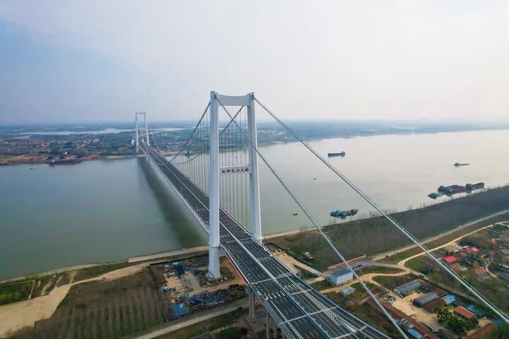3月20日,双柳长江大桥正式通车。这座主跨1430米、宽50.5米的长江大桥,是湖北武汉第12座长江大桥,也是目前长江上最宽的钢箱梁悬索桥,被誉为武汉“东大门第一桥”。