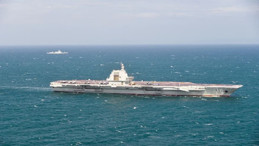 日前,海军福建舰航母编队组织海上多科目训练,这是福建舰入列后首次海上实兵训练。