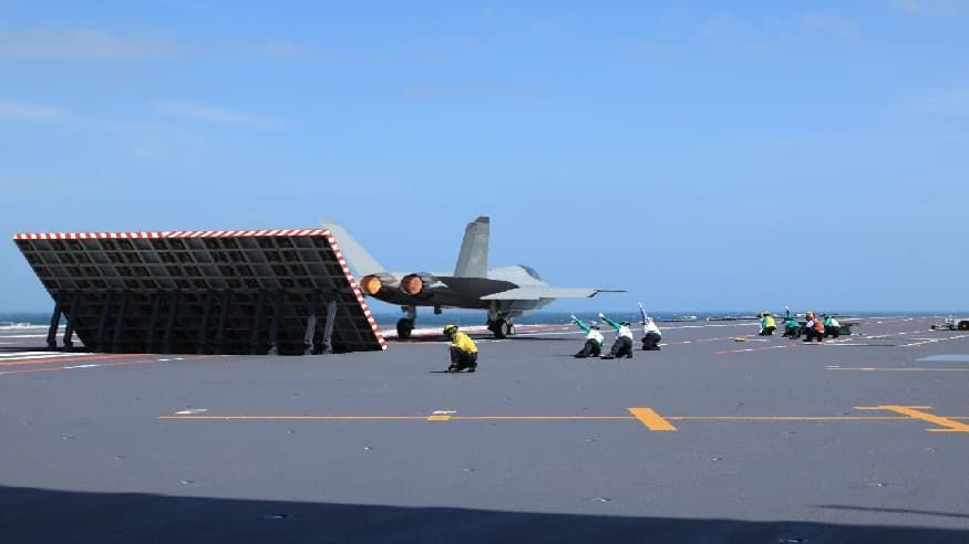 歼-35、歼-15T、歼-15DT、空警-600等多型舰载机在福建舰陆续完成了多架次弹射起飞和着舰训练,有效检验了福建舰电磁弹射、回收和甲板作业能力,舰机适配性得到进一步验证。