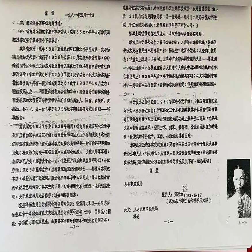 幸好,1980年代初黄速治女士呈请泉州市民政局的报告及复函、志民先生战友致黄速治的信件还在,让我们这段历史得以尽量真实地加以追溯。更难能可贵的是,同为爱国归侨的泉州石狮籍战友施纯亮先生在1970年代写了一篇万字文,追忆志民先生在延安陕北公学期间的人格魅力。说实话,我看完施纯亮先生的这篇回忆录,脑海里已经勾勒出志民先生的样子——很较真,很严谨,你可能只是开个玩笑,他都可以跟你认真半天。但这股认真劲儿,又显得他很真诚,有原则,立场坚定,赤子情深。