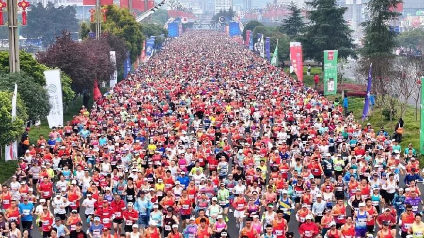 △ 3月15日,2026全国半程马拉松锦标赛暨第九届眉山仁寿半程马拉松·跑遍四川(眉山站)在四川省眉山市仁寿县举行,共吸引国内外2万名选手参赛。新华社发(潘建勇 摄)