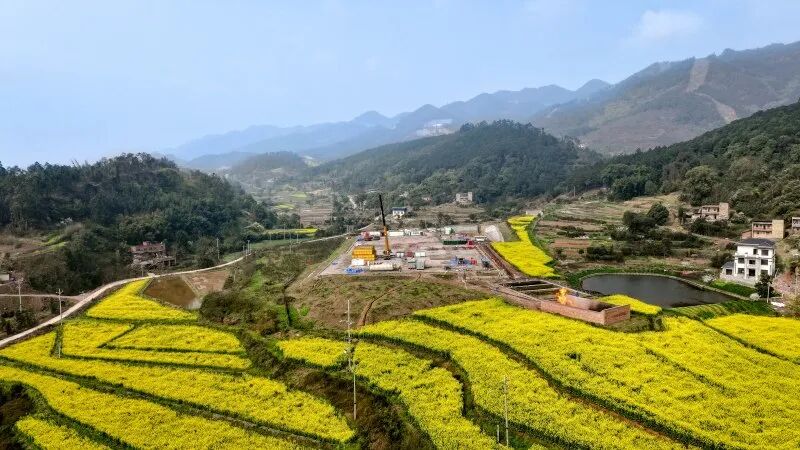 中国石化西南石油局永川页岩气田永页16平台地面流程建设现场。中石化西南石油局供图