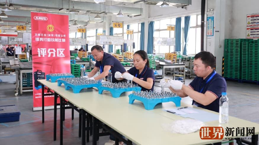 中梭通在线深圳报道(蒙仕荣 蓝乙人)2025年11月2日,由万晖五金(深圳)有限公司工会委员会主办、南布社区工会联合会指导的“弘扬工匠精神,助力企业高质量发展”锁具打磨技能竞赛,在万晖五金打磨车间举行。