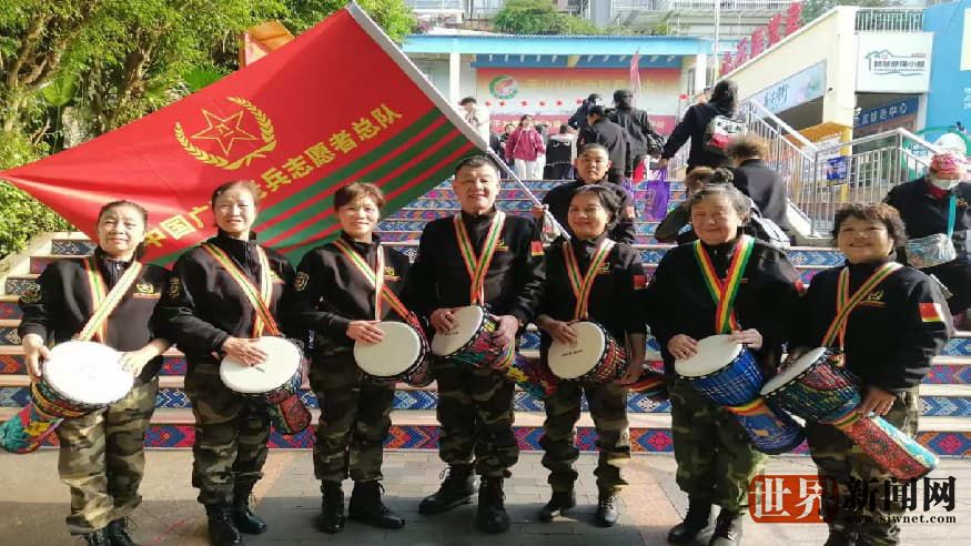更令人热血沸腾的是,广西老兵志愿者总队也积极投身其中!在总队长陈正林的英明组织与领导下,55 名志愿者如同一支纪律严明、斗志昂扬的队伍,带着满腔的热情与无私的奉献精神,奔赴这场盛会。他们不仅带来了活力四射的手鼓队,更精心准备了非洲鼓表演《幸福中国一起走》和《欢乐年年》。那激昂的鼓点,仿佛是时代的脉搏,跳动着对祖国的热爱与赞美;那欢快的节奏,如同幸福的旋律,传递着对新年的美好憧憬与祝福。