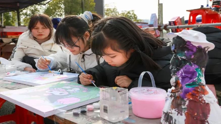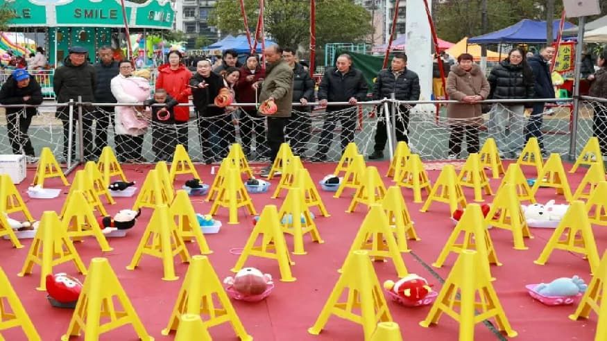传统的“抬花轿”被玩出了新花样,一颠一颠的笑声传得老远。旁边的填色摊位上,趴满了专心致志的“画家”,一笔一画涂出心中的“年兽”和“福字”。还有吹糖人的、套圈的、蹦蹦床的……那些我们小时候盼了一整年的快乐,依然鲜活地上演着。