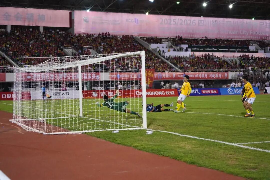 仅仅3分钟后,成都队迅速扳平比分,进球队员14号王辰。