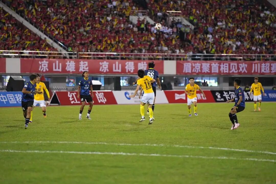 上半场25分钟左右,凉山队19号球员马小军补射成功,攻入本届“川超”赛事凉山队首粒进球,比分来到1:0。主场球迷全场欢腾,为凉山队加油。