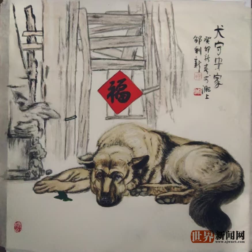 根植传统,自成一格,笔墨间蕴含深厚功底。邵利新深谙国画精髓,对中锋、侧锋、皴、擦、点、染等技法运用自如。笔下线条流畅如行云,顿挫如金石;其墨色浓淡干湿,层次分明,尽显东方水墨的独特韵味。然而,他并未止步于继承。在深厚的传统功底之上,邵利新融汇形成了鲜明而独特的艺术风格。无论是憨态可掬的十二生肖、意境悠远的山水、灵气生动的人物,还是禅意深邃的佛教系列,他总能以独特的视角与新颖的表现手法诠释主题,令人耳目一新。