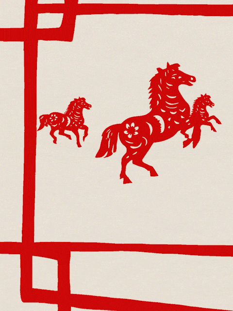 一匹骏马自剪纸中跃出