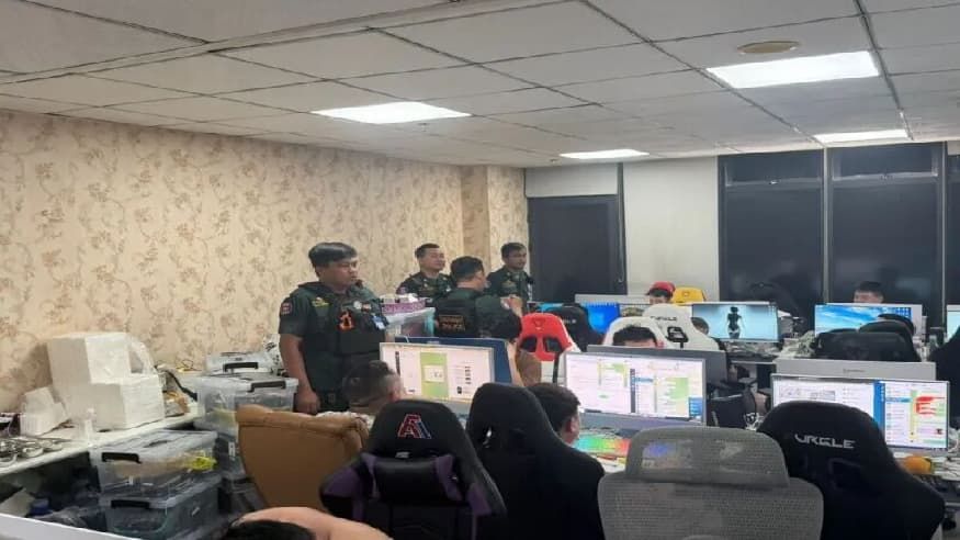 据【伟成 柬华日报消息】为严厉打击跨境犯罪、净化社会治安环境,西哈努克省警方于本月10日采取大规模突袭行动,成功捣毁一个隐藏在赌场内的特大电信诈骗团伙。