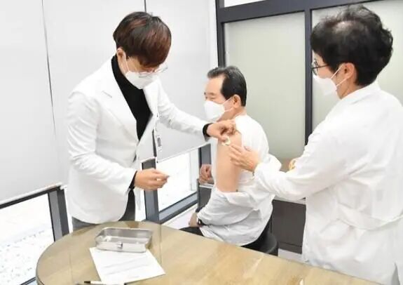 韩国国务总理丁世均接种流感疫苗(图源:韩媒)