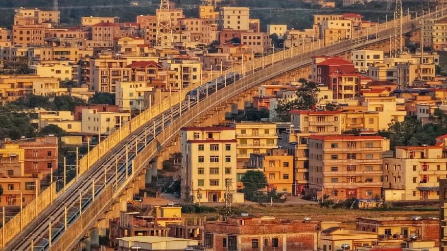 广深港高铁沿线,复兴号在都市与绿野之间绘就绿色发展的图景。朱博 摄