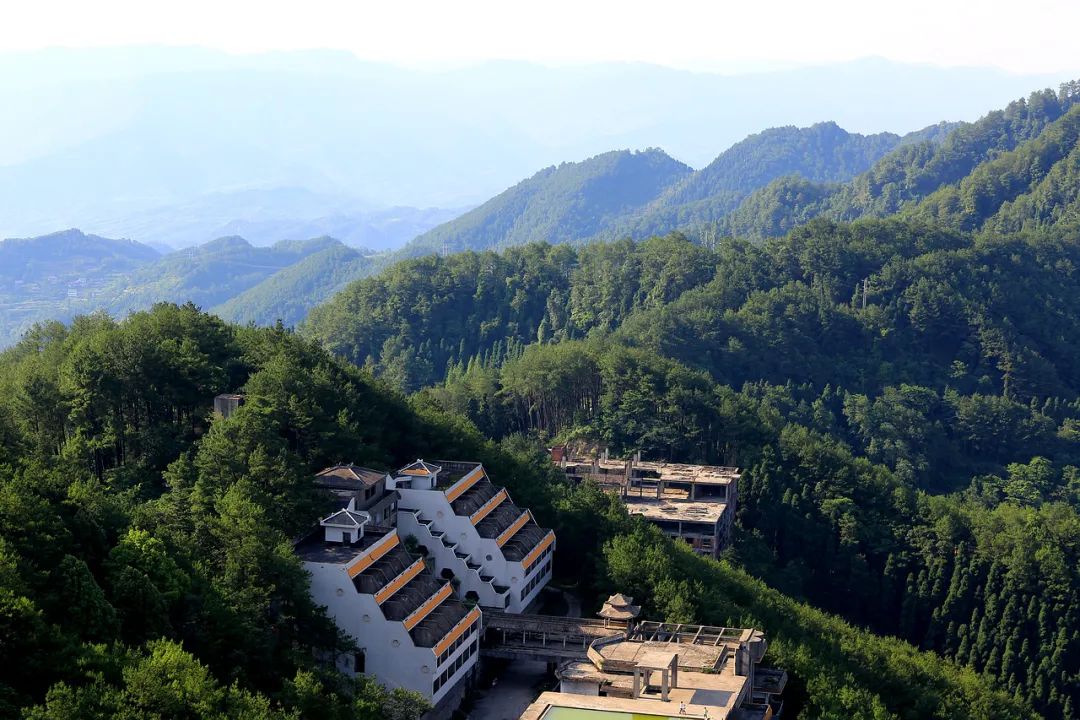乌梅山庄建筑整体呈欧式风格,依山而建,被层层山峦拥抱在怀中,可谓是藏匿在山间的宝藏避暑胜地。