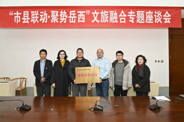 秘书长潘君向岳西民宿行业协会授予"青联社联络站"牌匾,标志着市县青年文旅人才联动平台正式启用,为青年人才成长提供组织保障。市协会党建指导员陈都、岳西县文旅体局副局长童星宇、县融媒体中心副主任黄丽华及在地会员单位代表共同见证并合影留念。